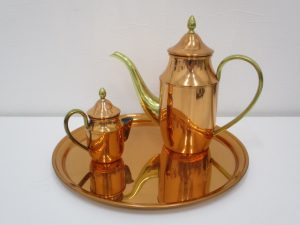 先日、純銅製のトレーとポット、クリーマーのセットをお買取させていだきました♪