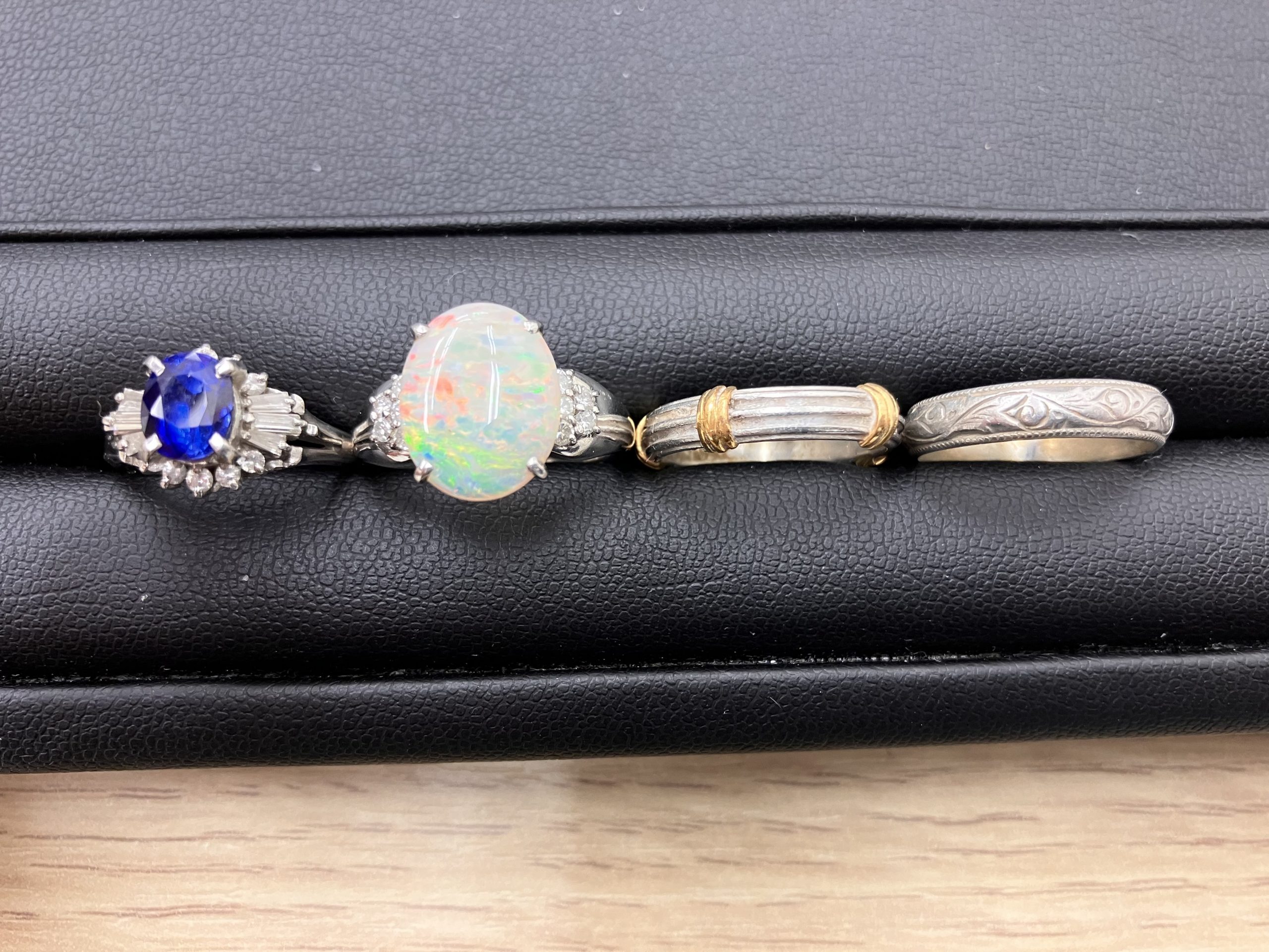 pt900とK18のコンビリングとpt900のリングそして、オパールリング