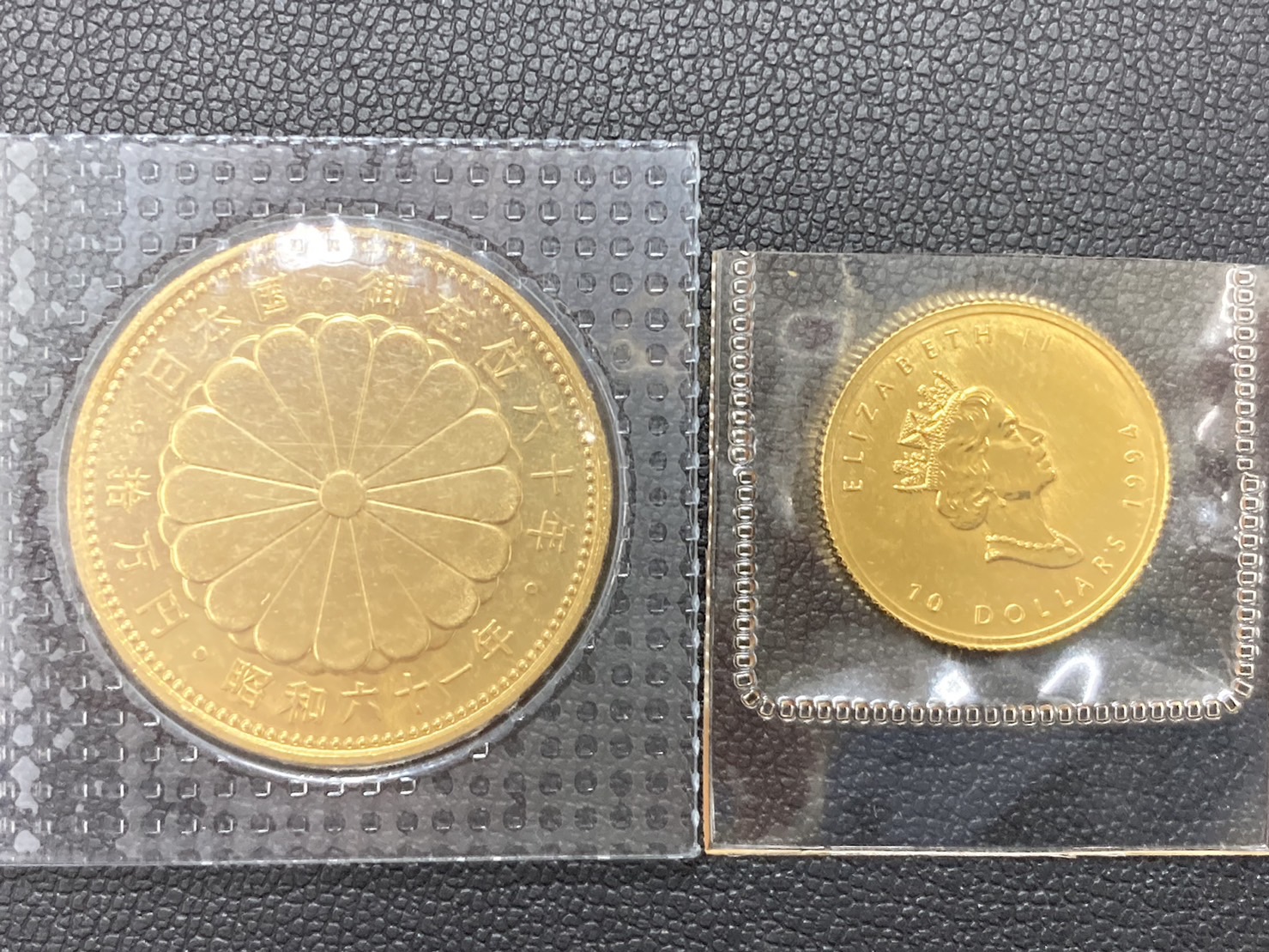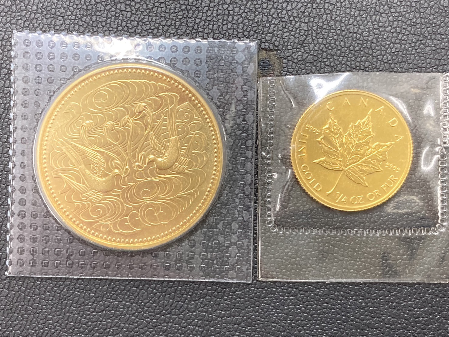 天皇陛下在位10万円金貨とK24・メープルコイン