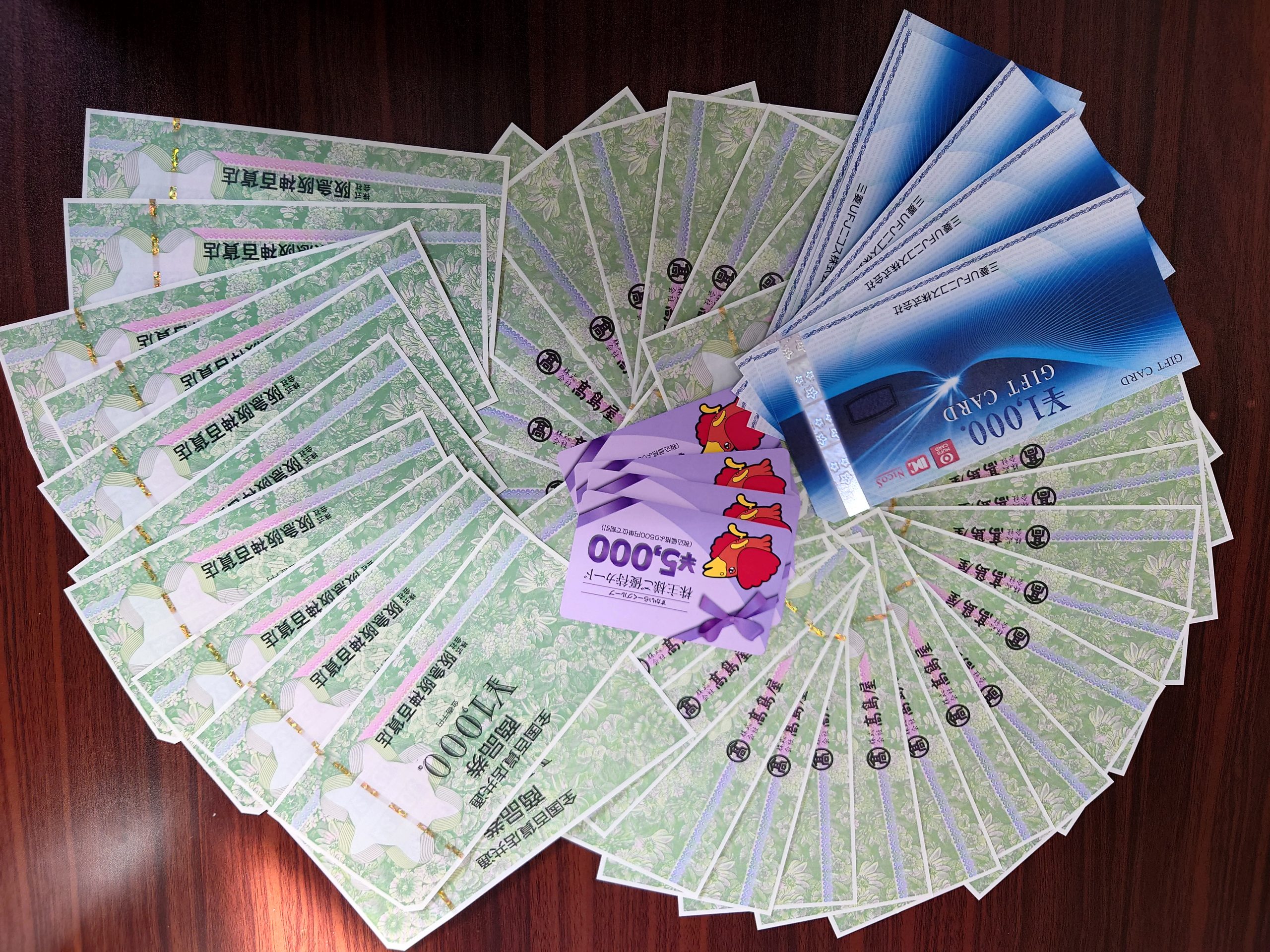 代表的なものでは、国内の百貨店で共通に使えるもの、信販系のもの、各店舗専用のもの、他にも旅行券、ビール券まで幅広く発行されています。