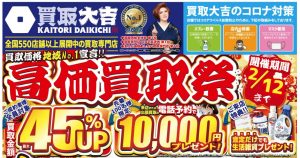 その他、最大45%upキャンペーン、査定だけでも生活雑貨プレゼントも実施しております。
