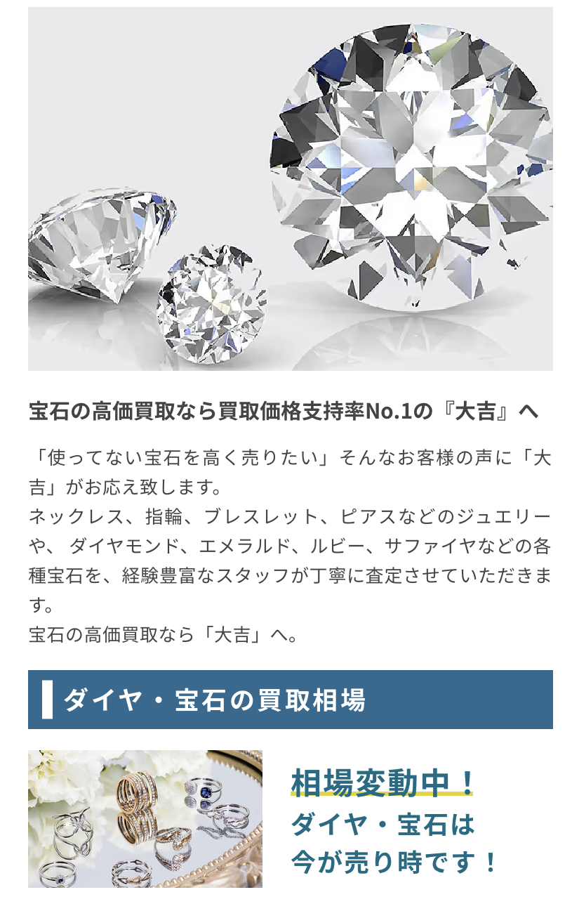 筑紫野市、太宰府市でのダイヤモンド・宝石のお買取りは買取大吉西鉄二日市駅前店までお任せください。 | 西鉄二日市駅前店