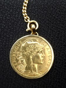 写真は、ペンダントトップとして購入されたお品物ですが、パリ造幣局発行20フラン金貨としてのお買取りとなりました。