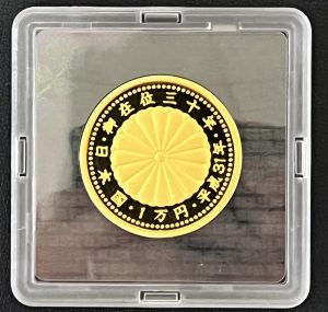 天皇陛下御在位30年記念1万円金貨です。