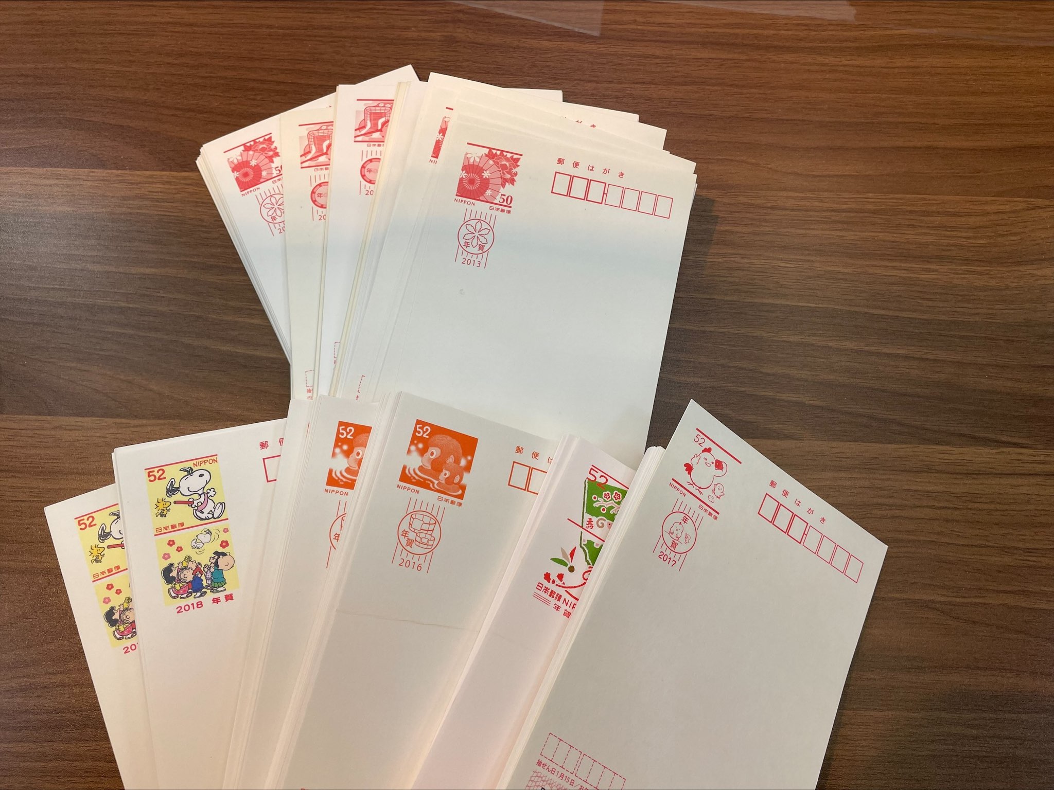 年賀はがきも溜まりに溜まった状態で