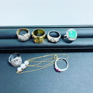 先日、デザインリング、ダイヤモンドリング、エメラルドリング、ルビーリングと様々なリングをお買取させて頂きました。