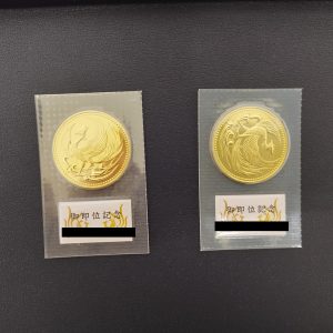 この10万円金貨には天皇陛下御即位記念10万円金貨と天皇陛下御在位60年記念10万円金貨の2種類があります。
