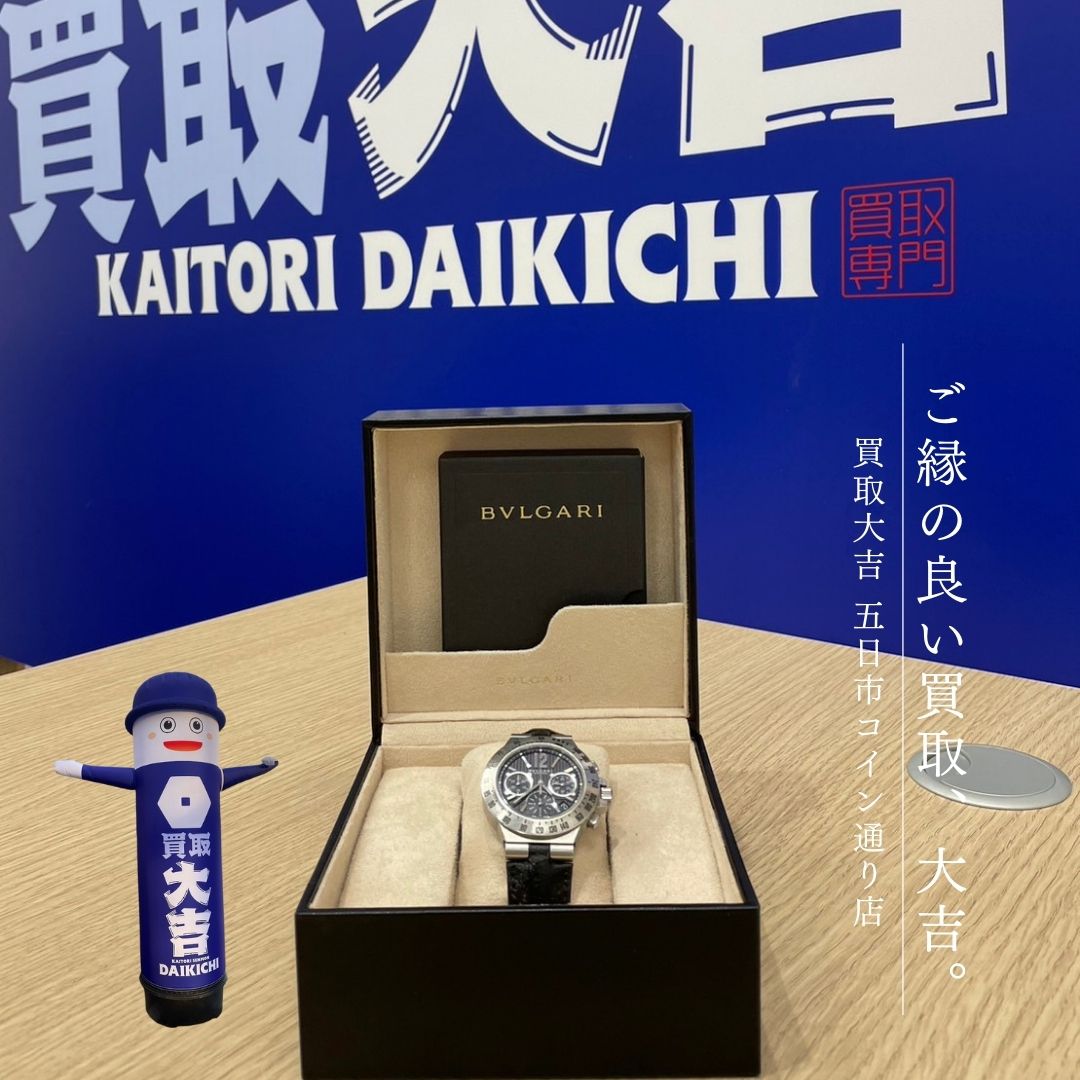 50代男性からお買取をいたしました! ・ブルガリ 時計 <ご来店のキッカケは?> もらったが使う機会がなくなったため売却を検討中、買取大吉 五日市コイン通り店を通りがかったので 査定しもらったら納得のいく金額だったため売却。🔷――――――――🔷 BVLGARI(ブルガリ)はイタリアを代表とするブランドで、世界五大ジュエラーという、 世界的な知名度と人気を誇る5つのジュエリーブランドの一つ✨ ジュエリーのイメージが強いブルガリかもしれませんが、 時計の歴史も長く、時計専門ブランドに負けないクオリティを持っています。 ブルガリの腕時計はデザインのバリエーションが豊富。 文字盤の色やケース、様々な素材を使用しているため、 時計好きもそうでない方でもラインナップを見るだけでも楽しいですよ♪ 🔷――――――――🔷 大切にしてきたモノをしっかり鑑定いたしますので、 品数が多い時・外出できない時・整理目的でまとめて見て欲しい時もご相談下さい。 国内外の豊富な販売ルートと、BtoB専門の自社オークションサイトを運営している買取大吉なら、 他社圧倒の"高価買取"を実現できます! 広島県広島市佐伯区五日市にある 【買取大吉 五日市コイン通り店】は、 金買取・貴金属買取・ダイヤ買取・ブランドバッグ買取・ブランド時計買取ならお気軽にご相談ください! 金・貴金属・ダイヤモンド・ブランドバッグ・時計はもちろん 切手・洋酒などのお酒・着物や骨董品等、「こんなもの売れるかな...?」とお考えの品物まで、すべて無料査定させていただきます! 一般的にかかってしまう査定料・出張査定料・手数料も全て無料でお買取りさせていただいており、 キャンペーン等も行っておりますのでお見逃しなく。