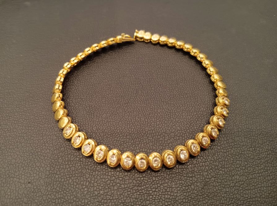 18金とダイヤのテニスブレスレットです。