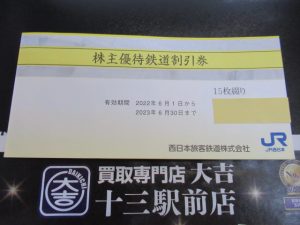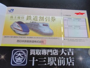 🏠お家に使わない株主優待券はございませんか?JR西日本株主優待鉄道割引券15枚綴りをお売り頂きました。買取専門店 大吉 十三駅前店です👍 | 十三駅前店