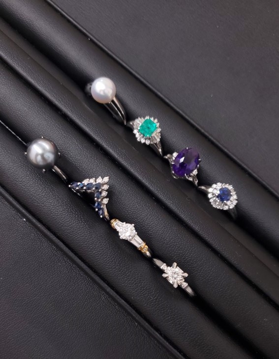 プラチナは色とりどりの宝石の色を邪魔せず、本来の輝きを引き出せます。