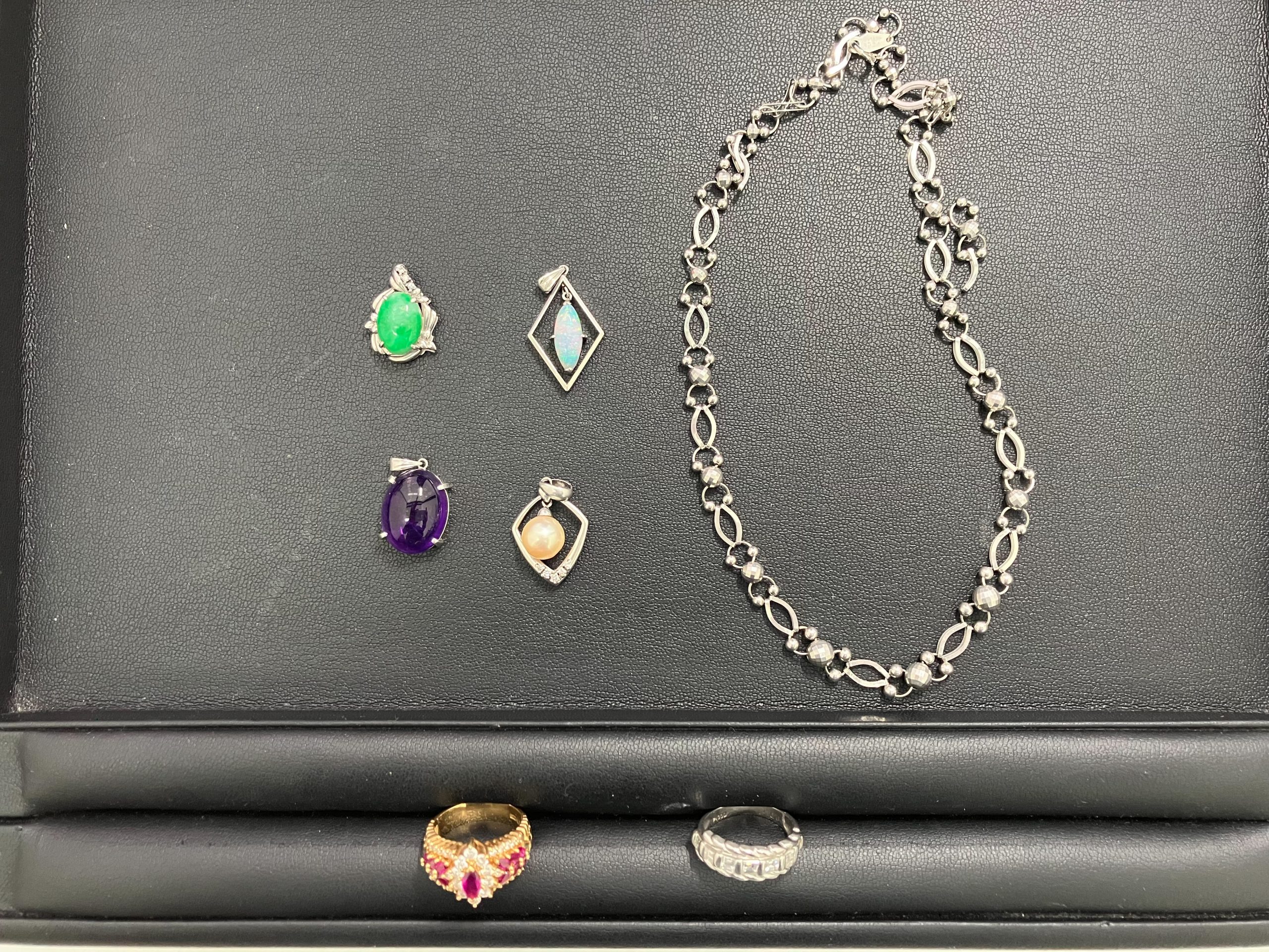 さて、今回、お買取りさせていただいたお品物は『ジュエリーのネックレストップ、リング、ダイヤリング、プラチナネックレス』です。