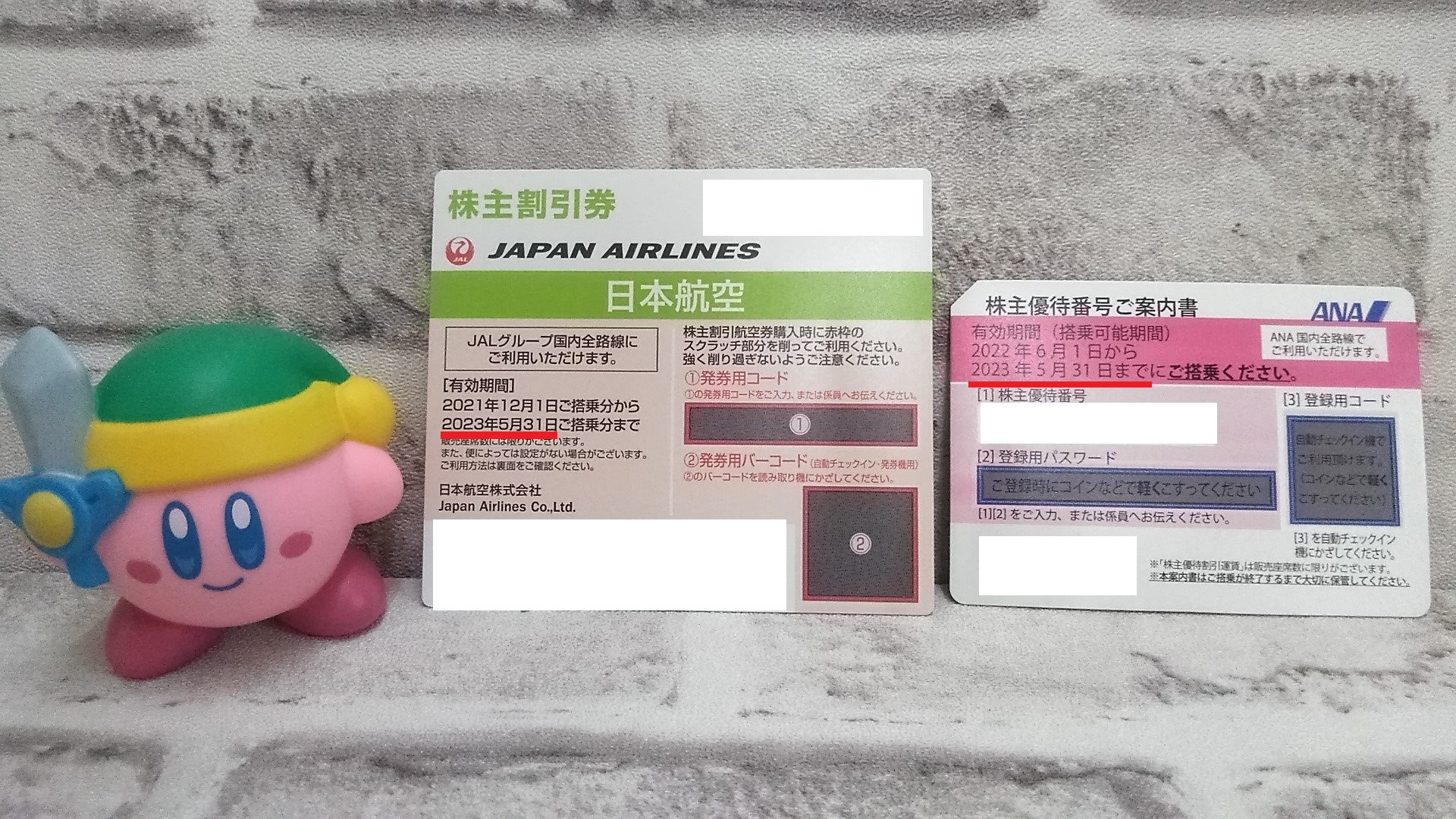 写真の色の株主優待券は来月5月31日搭乗分までが期限です