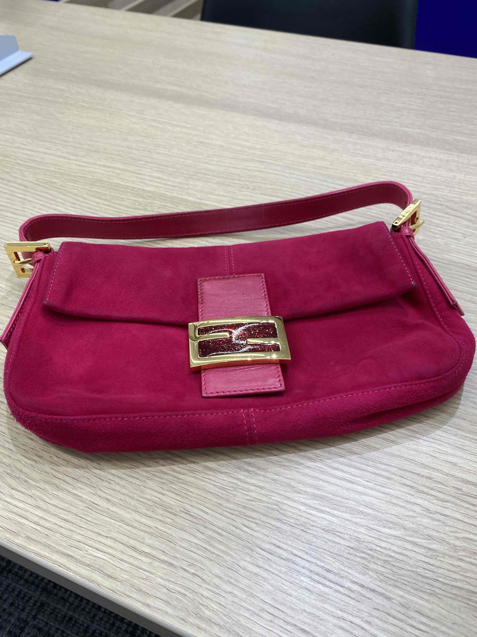フェンディといえばズッカ柄が定番ですがこのスエードバッグも人気があり