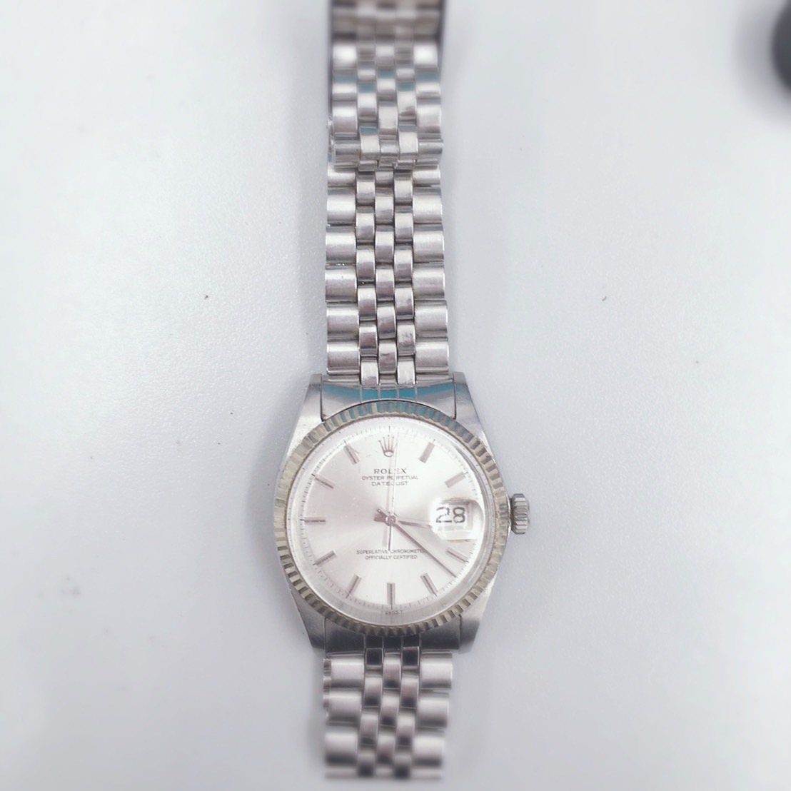表面にキズがついていたのとベルトのばねが錆びついていましたが、人気のROLEXということで