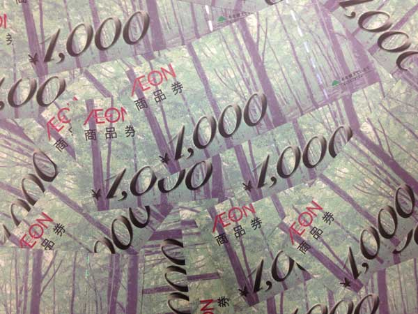イオン商品券をお買取りさせていただきました。