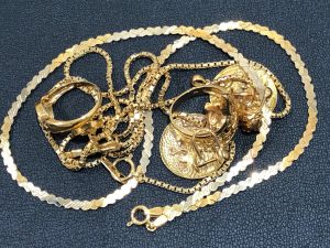 壊れた金のアクセサリー、金の欠片、大吉西広島駅前店にお持ち頂ければ、高価買取致します。