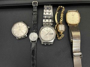 SEIKO、ロンジン、OMEGAの時計です。ビンテージ時計で電池が止まって動かない物やベルトが無い物もありましたが、全て買取させて頂きました。針が腐食していたり、ケースが割れていても買取しておりますので使わない時計は是非お売り下さい。
