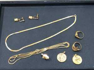 買取大吉では写真の様に金のアクセサリーをはじめ、石が取れた金のアクセサリーや変色してしまった金の製品など金ならどんな状態、どんなデザイン、どんな製品でもお買取致します。