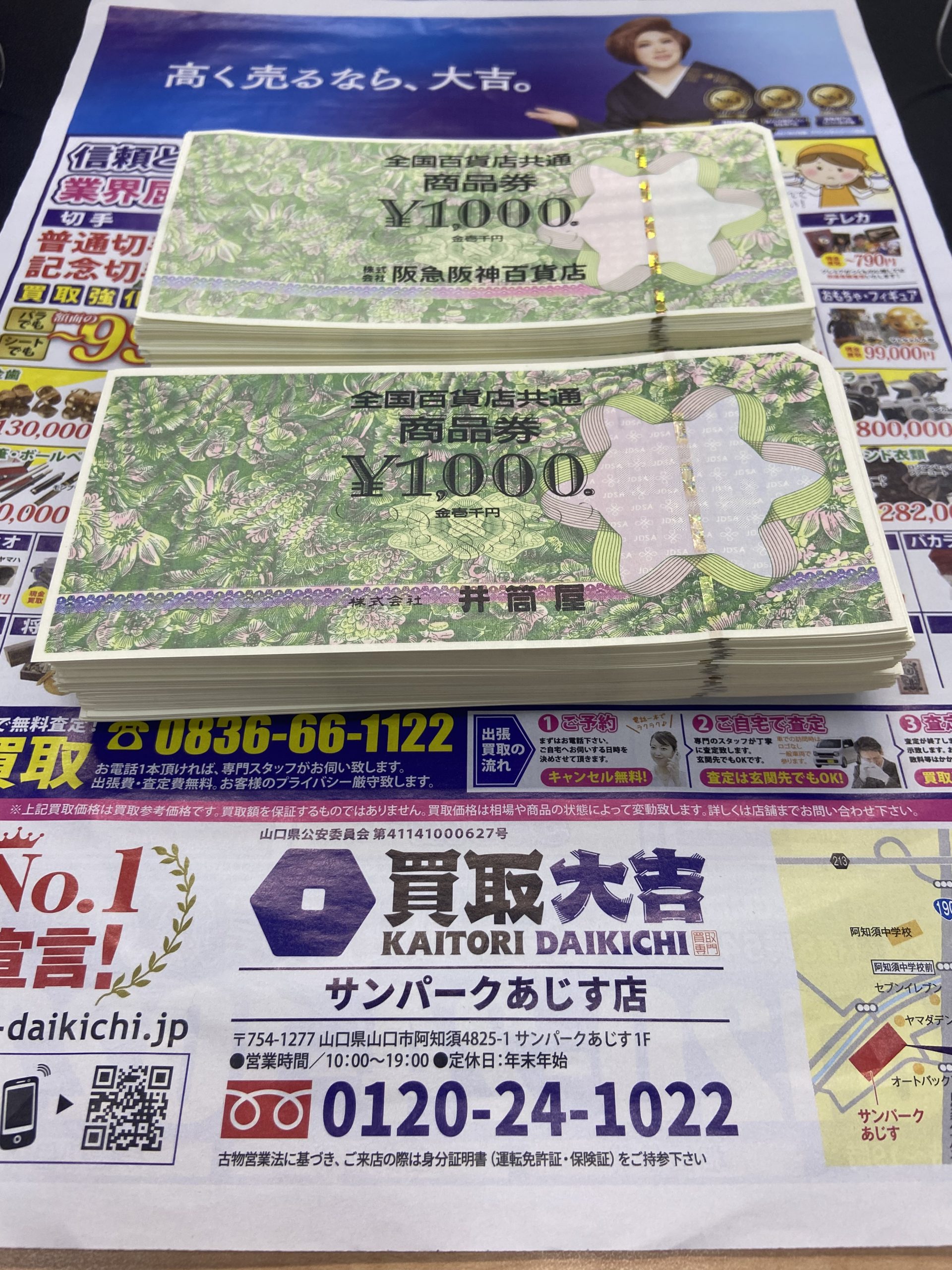 全国百貨店共通商品券 金券 大量お買取!買取大吉サンパークあじす店です。 | サンパークあじす店