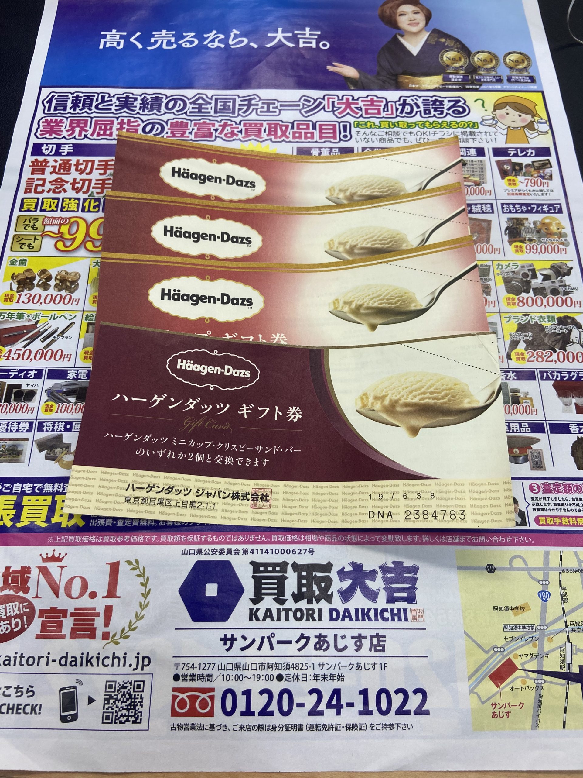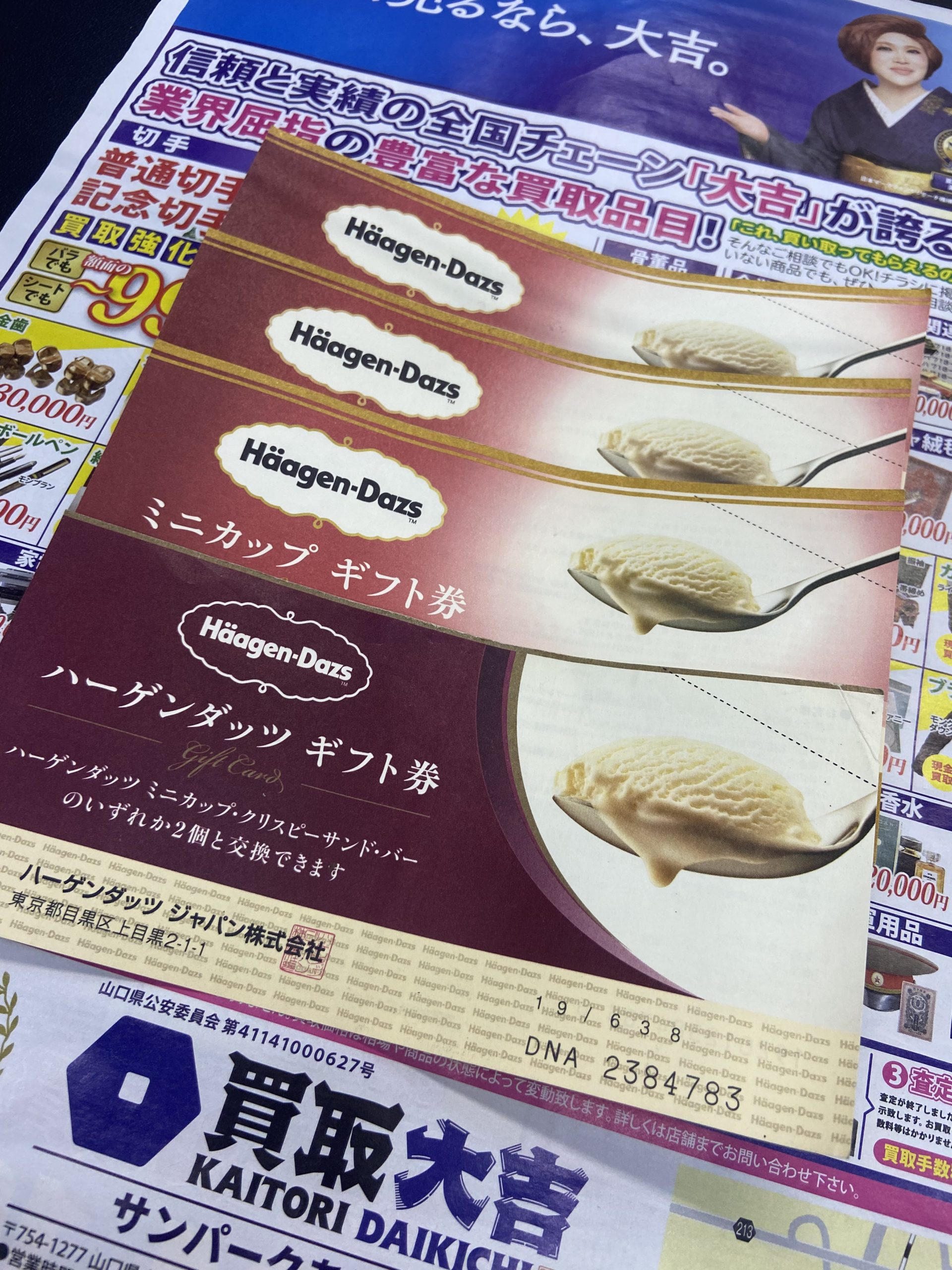 ハーゲンダッツ ギフト券をお買取!買取大吉サンパークあじす店です。 | サンパークあじす店