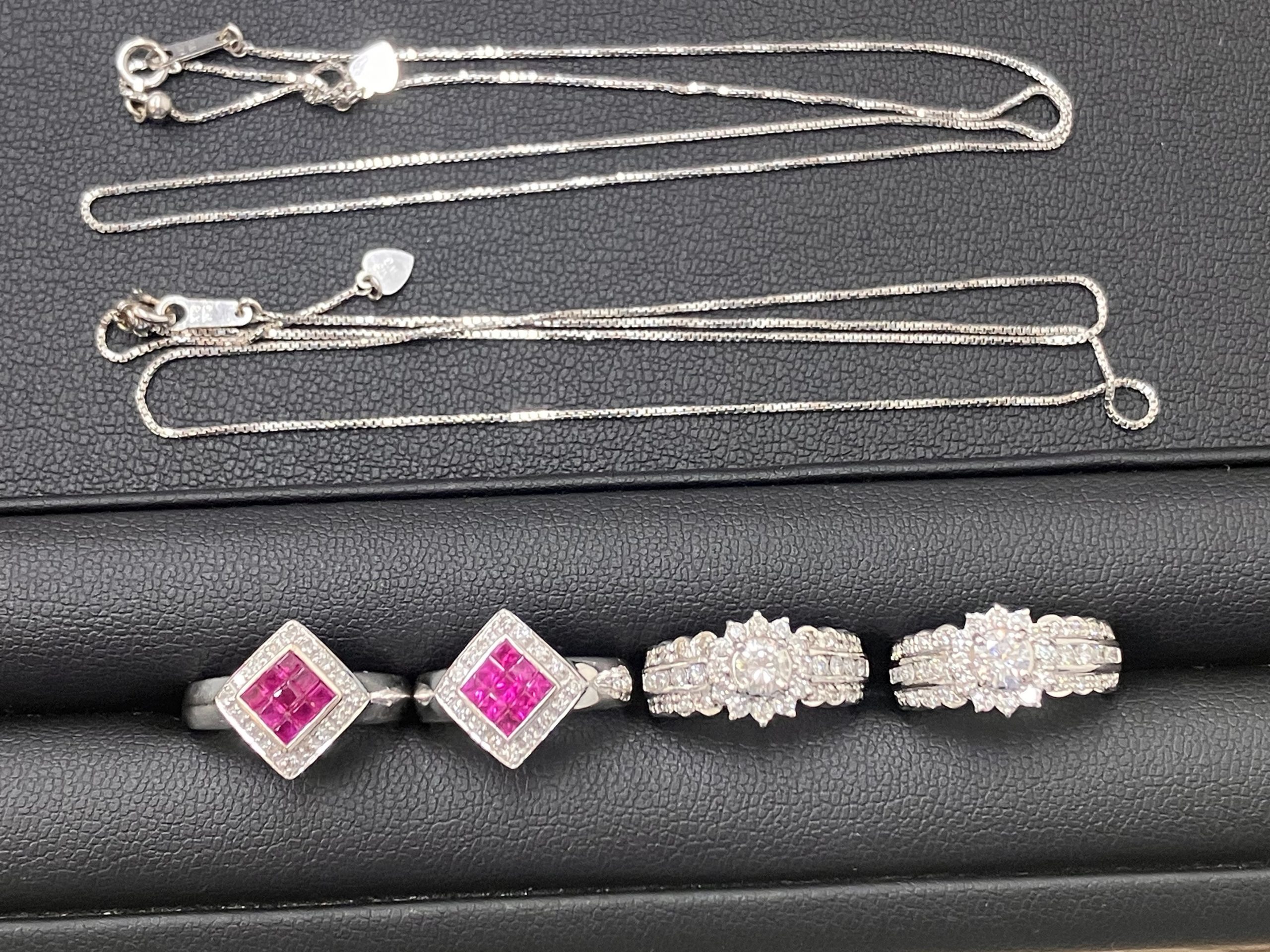 pt900のリングに0.5ctのルビーと0.1ctのダイヤモンドを飾ったリングが2点