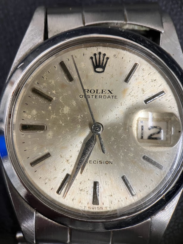 今回お売りいただいたオイスターデイト Ref.6694は50年以上前のお品物になり、文字盤・針は腐食が酷かったのですがきっちりと高額買取させていただきました。