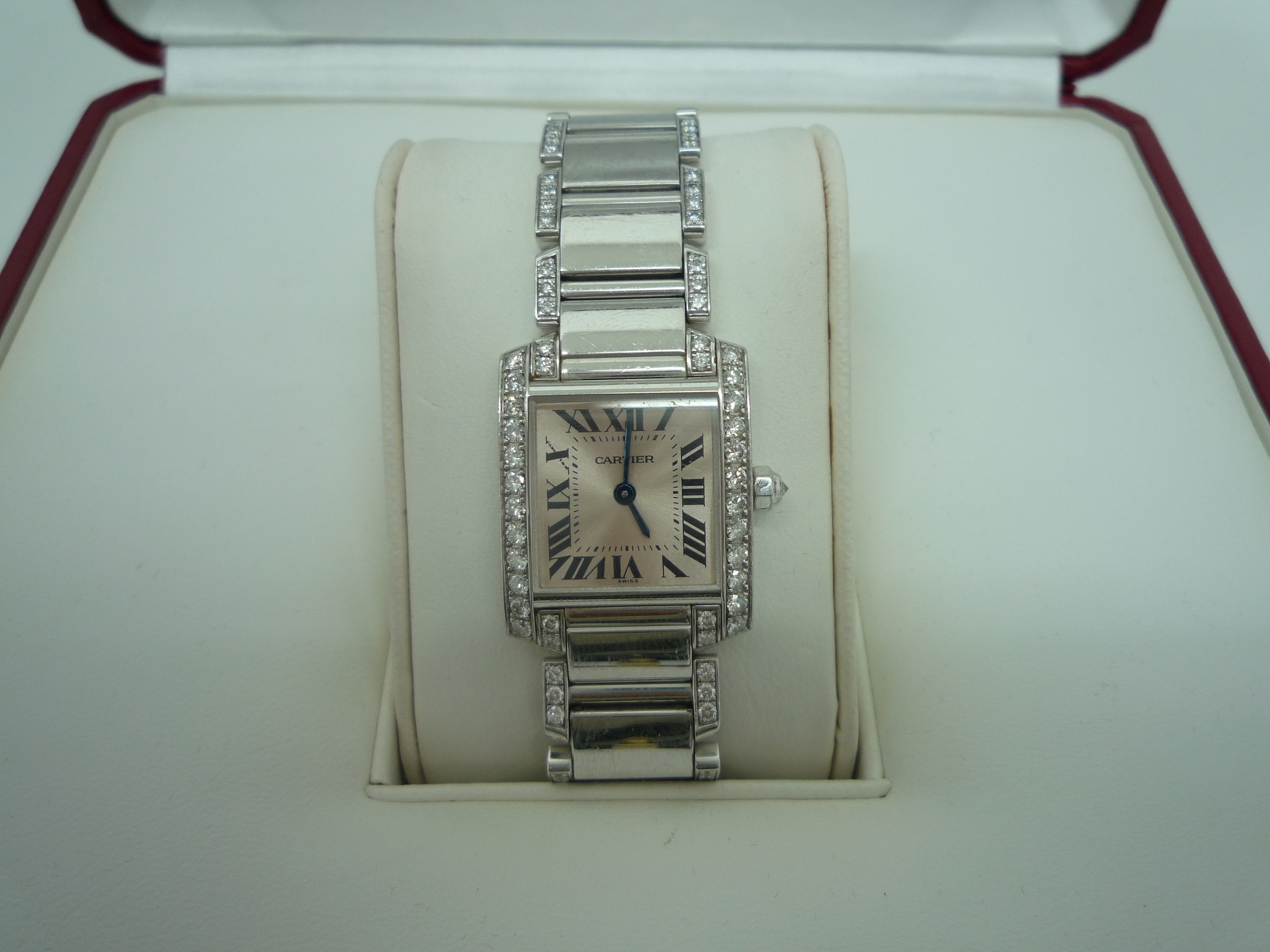 カルティエのタンクにダイヤモンドがあしらっており、とても素敵なお品です。