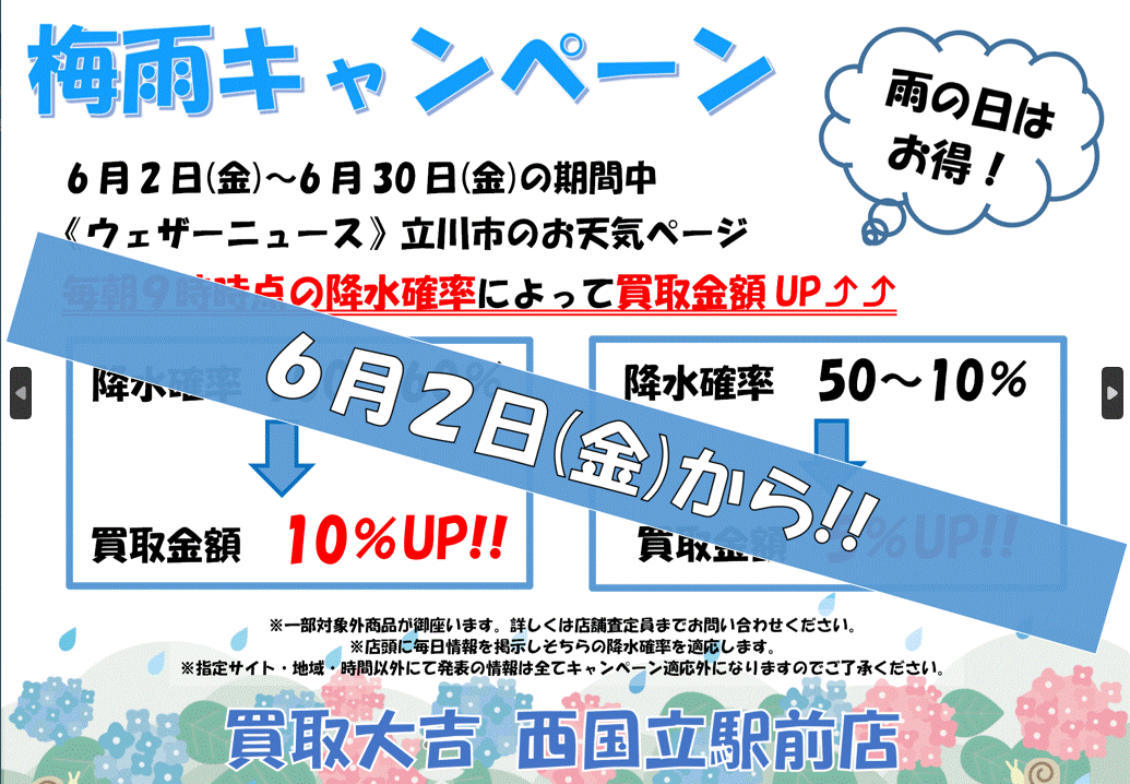 【予告】6月は雨の日がお得☂【6月2日から】 | 西国立駅前店