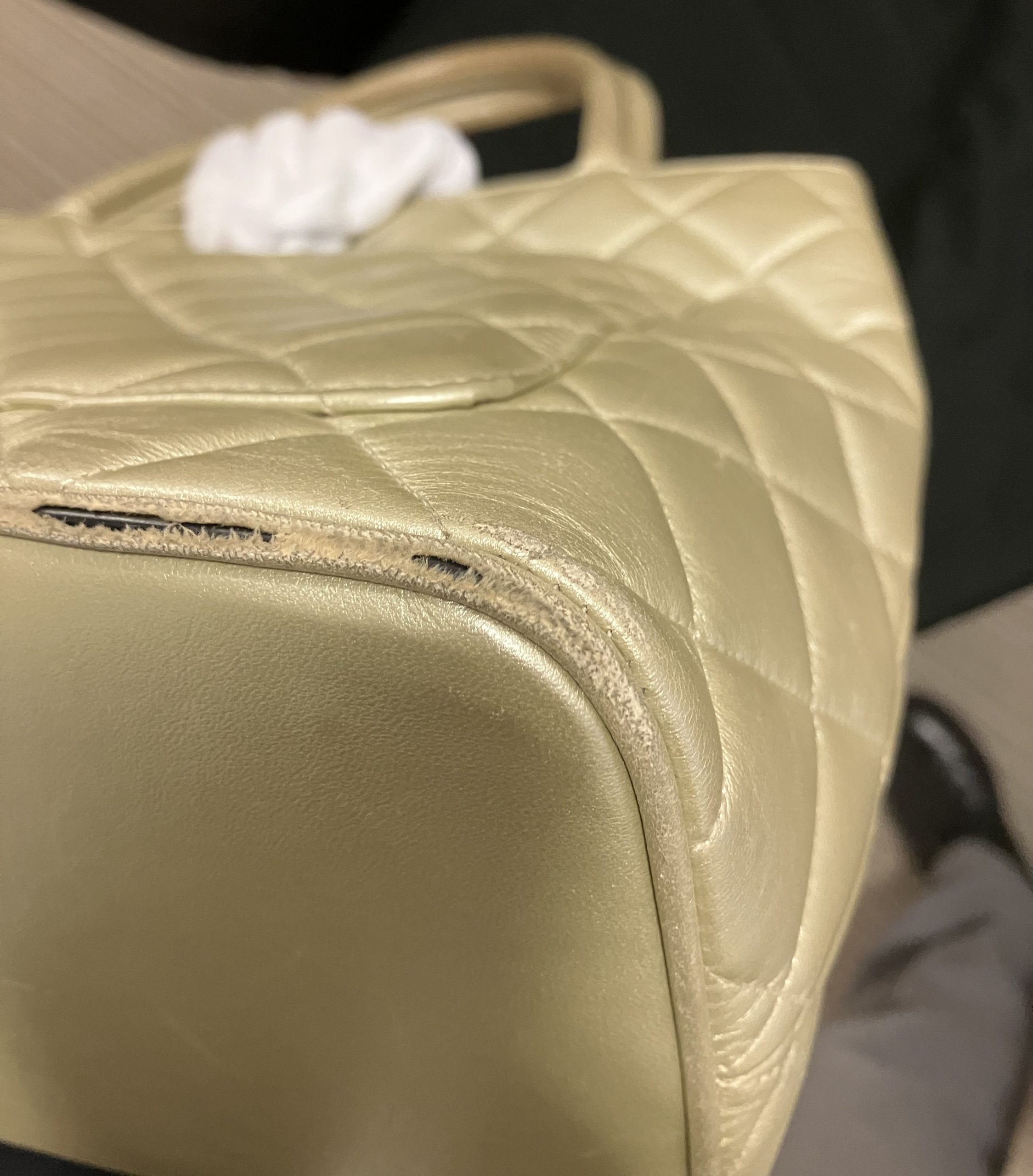 こちらのシャネル、角が擦れて中にある