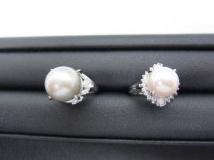 【大粒のパールと、ダイヤモンド付きのプラチナリング】2点です。