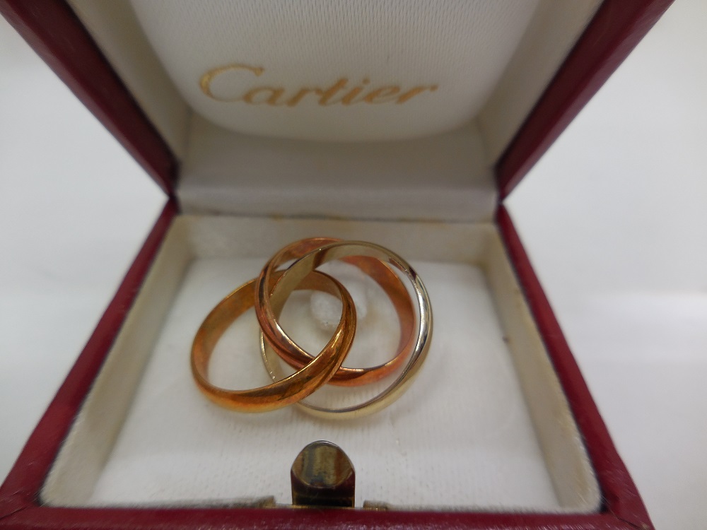 画像は昨日ご売却頂きましたカルティエの定番ジュエリー三連リングです。