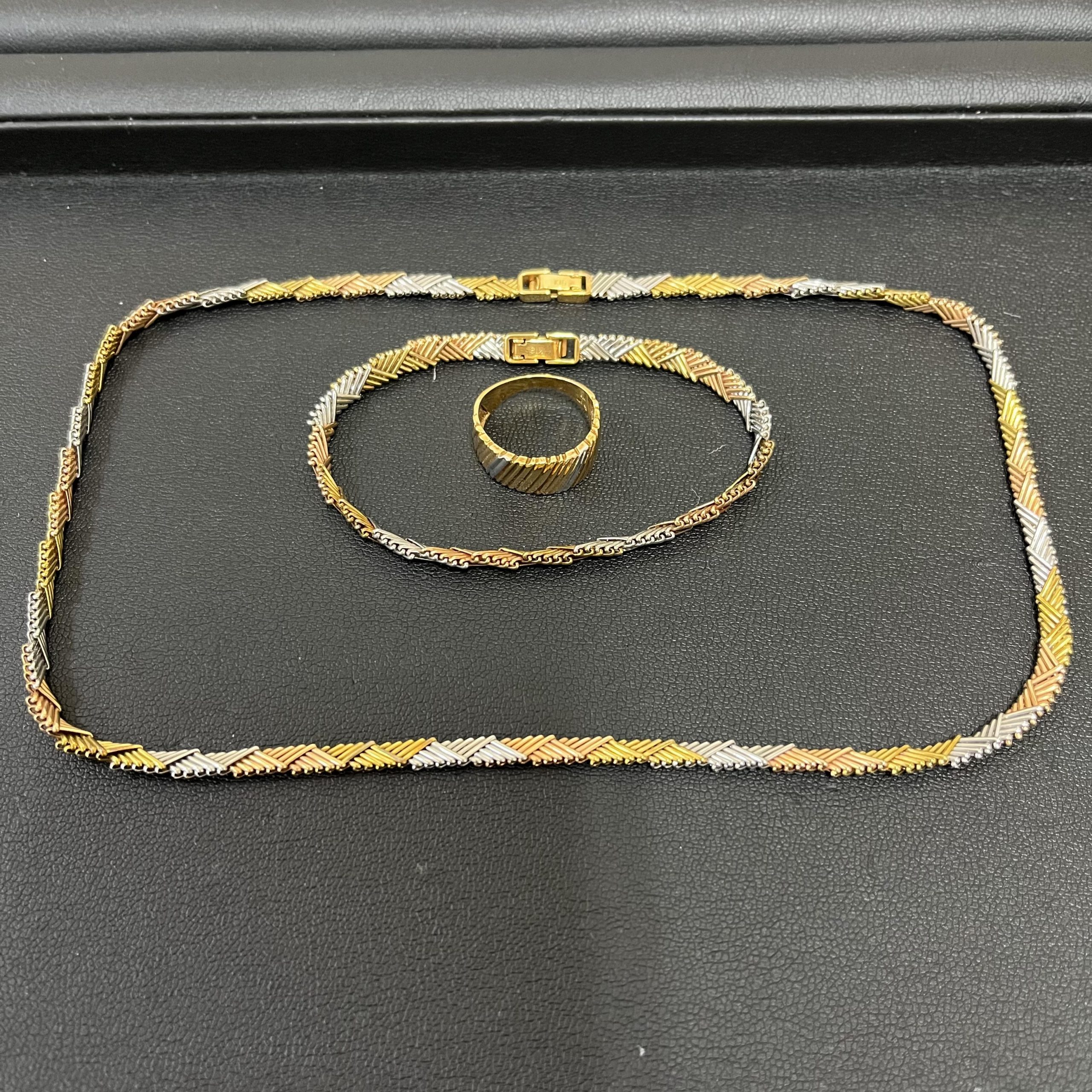 18金とプラチナ製のネックレス、ブレス、リングのセットです✨