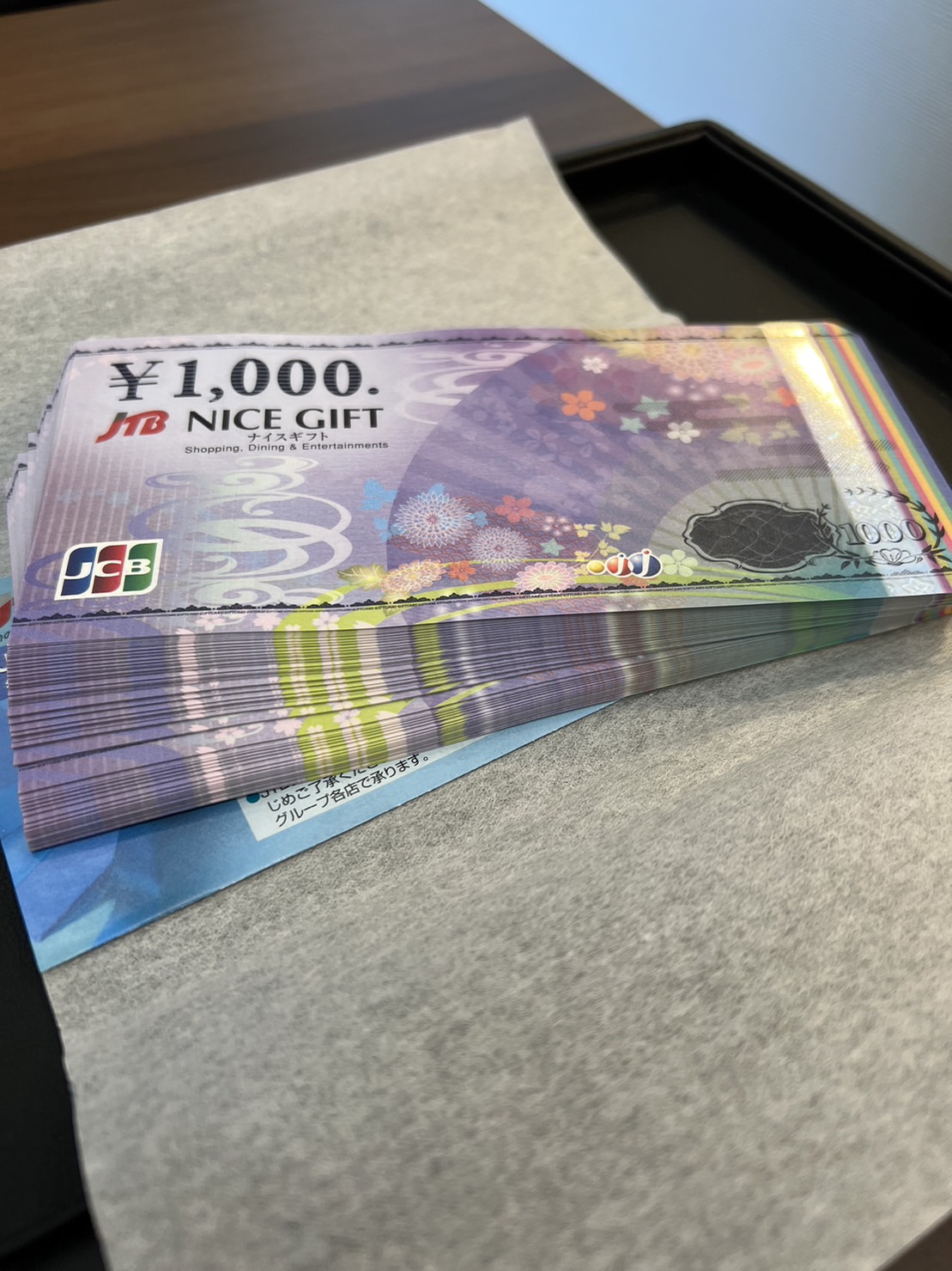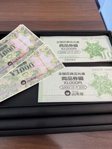 大量の商品券をお買取り致しました。