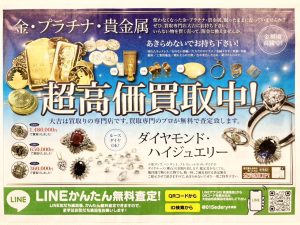当店では、金、プラチナ、指輪、宝石等の高価買取を実施しております。