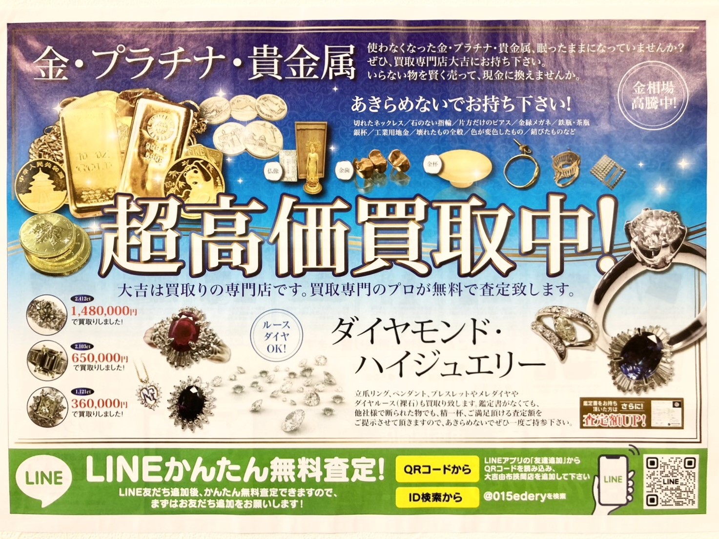 お見積り無料!満足の高価格買取!その場で現金買取!大吉にお売り下さい!