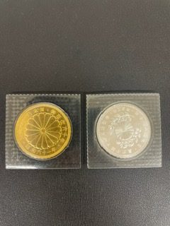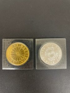 天皇陛下御在位六十年記念十万円金貨、皇太子殿下御成婚五千円銀貨をお買取りさせていただきました。