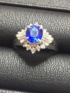 美しすぎる透き通った青色の石。ダイヤモンドとサファイアを装飾されたデザインリングのお買取りです( ゚Д゚) 最近では色石の評価が高くなっており、ルビー・サファイア・エメラルド・パールを含めたジュエリーが高騰しているのをご存じですか?