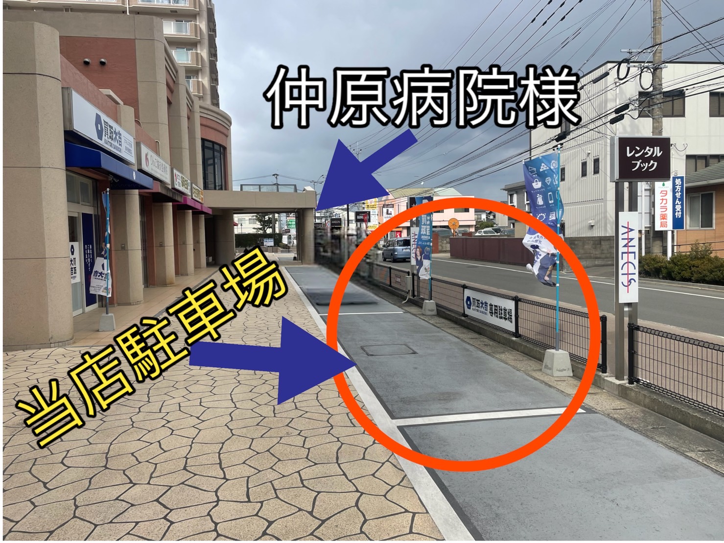 もしあいてなければ40m先に100円パーキングがございます。