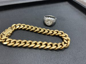 こちらはK18のブレスレットとダイヤ付プラチナリングを高価買取致しました。