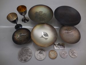 当店は銀杯や銀メダル、銀製工芸品のお買取りもさせていただいております。