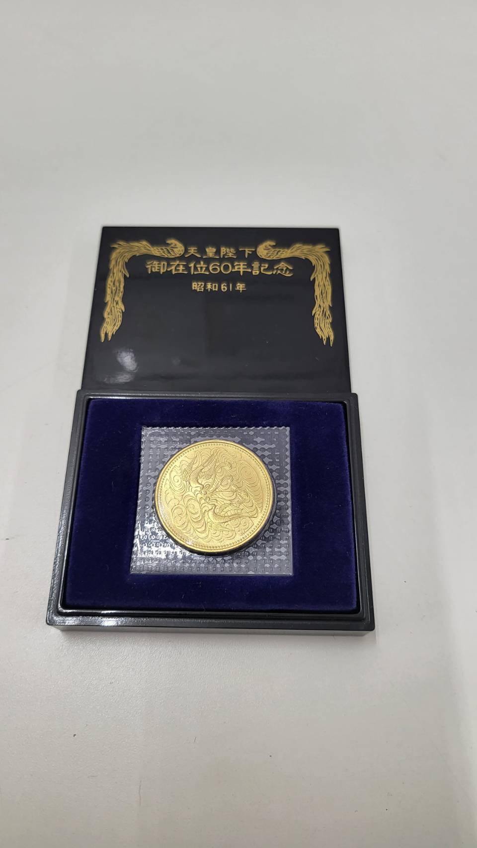今回ご紹介のお品ものは 天皇陛下御在位60年金貨になります。 昨年当店をご利用のお客様よりお買い取りさせていただきました。