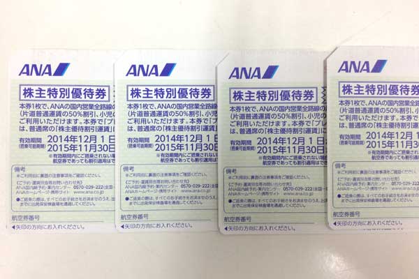 ANA株主優待券をお買取り致しました。