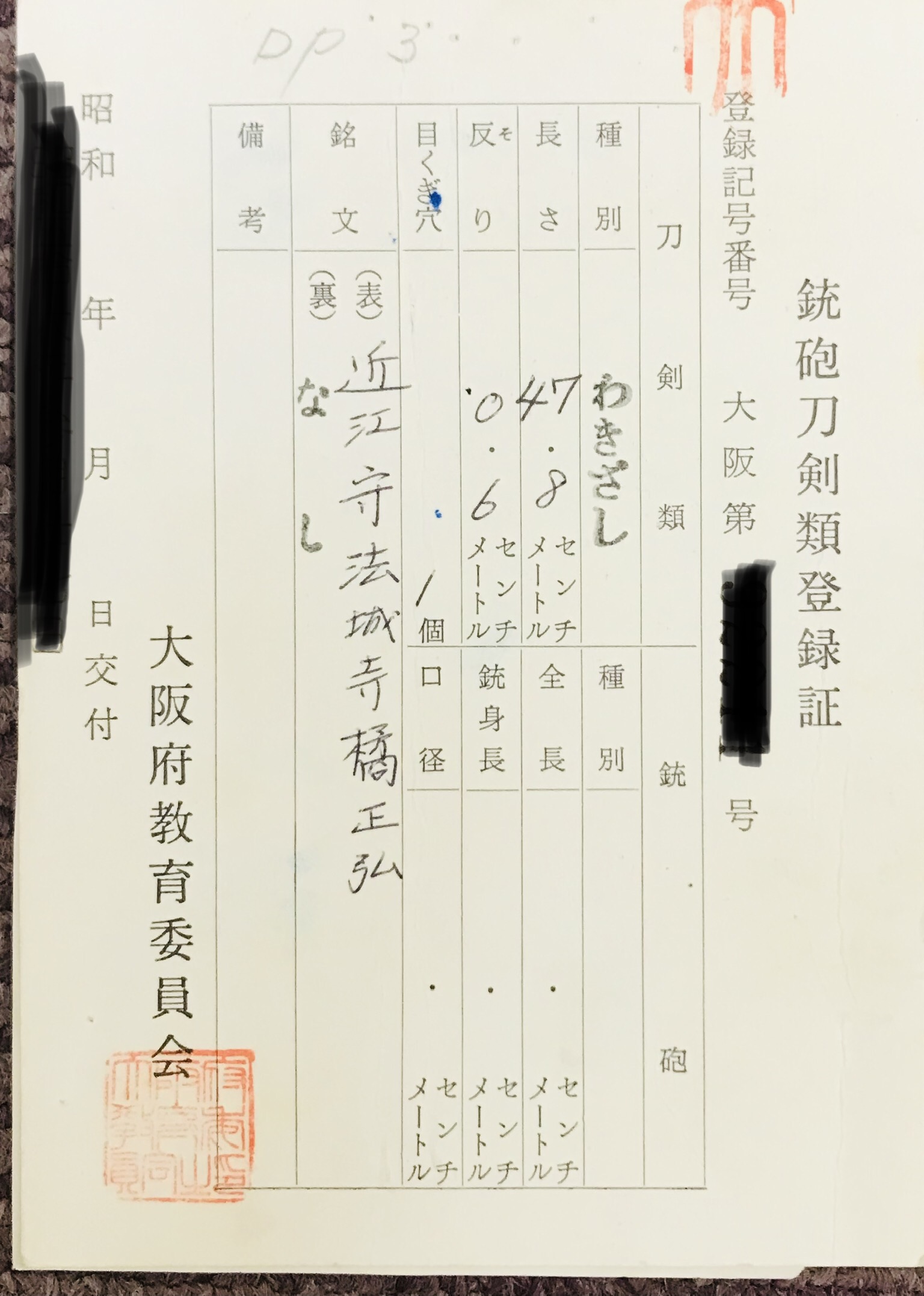 刀剣類のわきざしをお持ち込み頂きました。