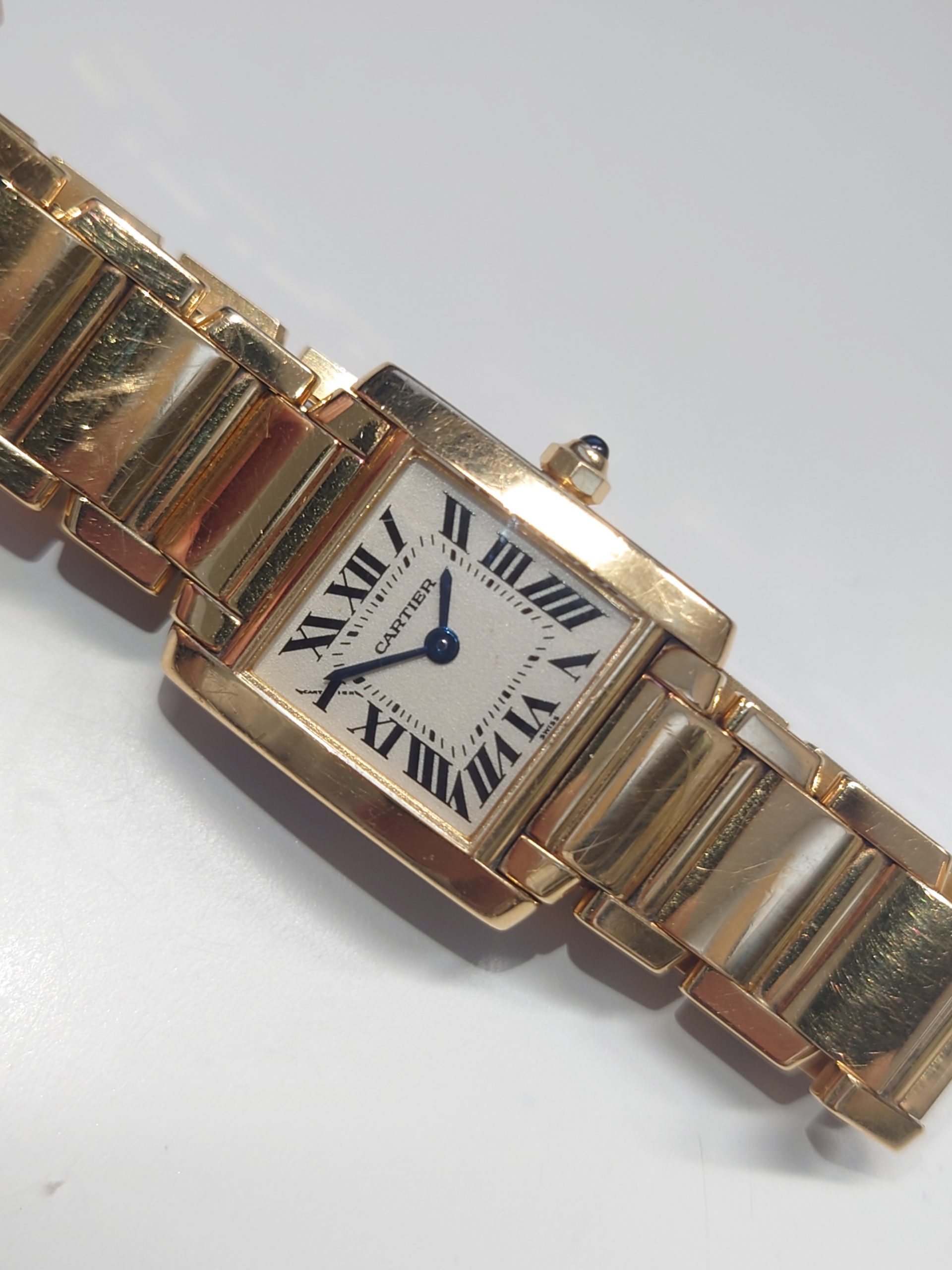 こちらカルティエのアイコンウォッチ、タンクフランセーズの金無垢モデルをお持ち頂きました☆