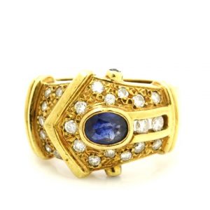 非常に魅力的なジュエリー、18金のサファイヤ 0.8カラットとメレダイヤ 0.6カラットを買取させていただきました。