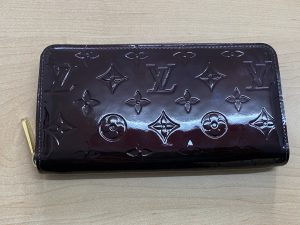Louis Vuitton の 財布 ヴェルニ アマラント ジッピーウォレット です。