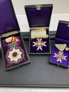 本日は「勲三等旭日中勲章」 「勲三等瑞宝章勲章」 「勲四等瑞宝章勲章」をお買い取り致しました。