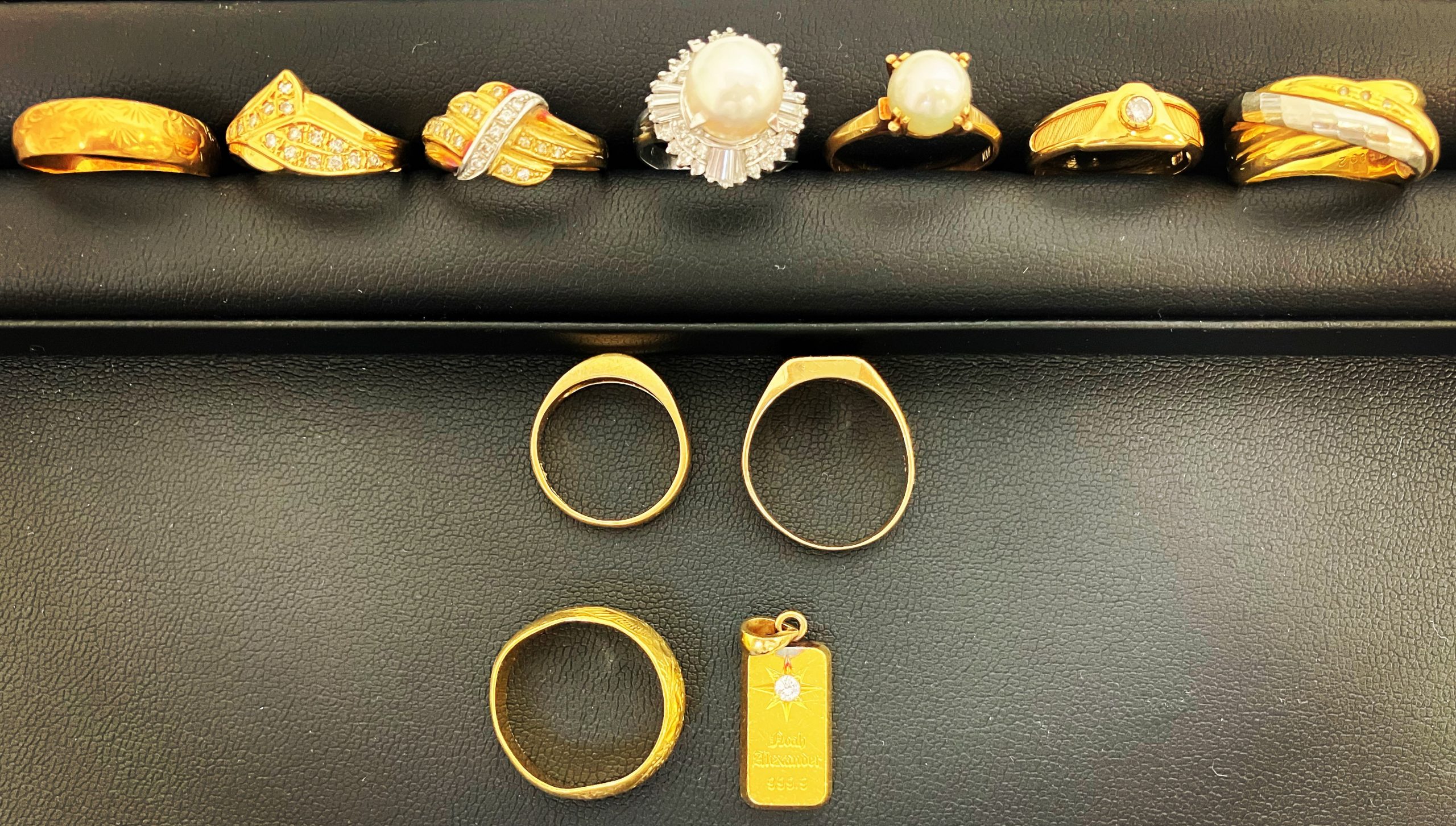 K24 純金のペンダントトップやリング、K18 Pt900のダイヤモンド付リングなど