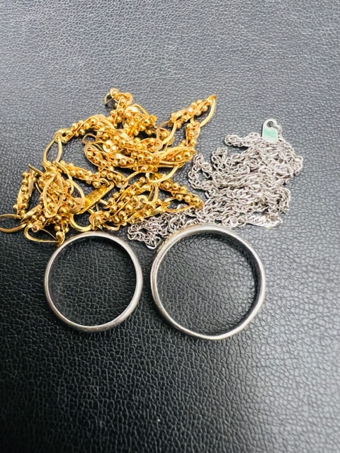 金・プラチナのリング、ネックレスです。